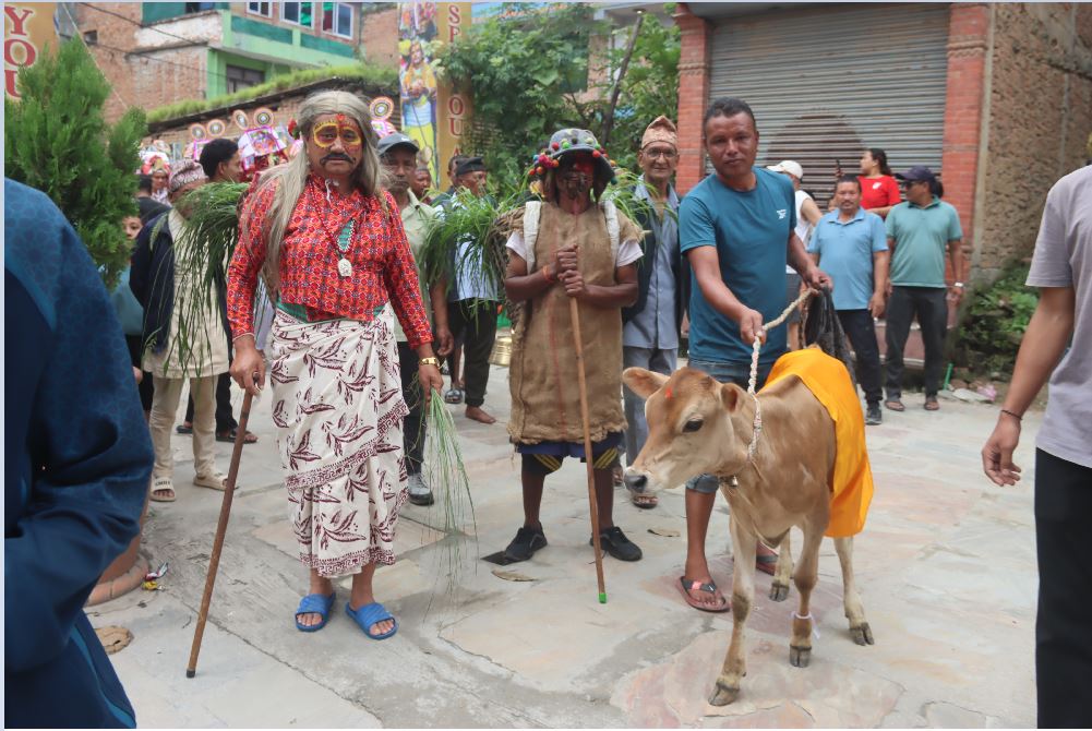 गाईजात्राका अवसरमा राजधानीका टोलटोलबाट सांस्कृतिक झाँकी