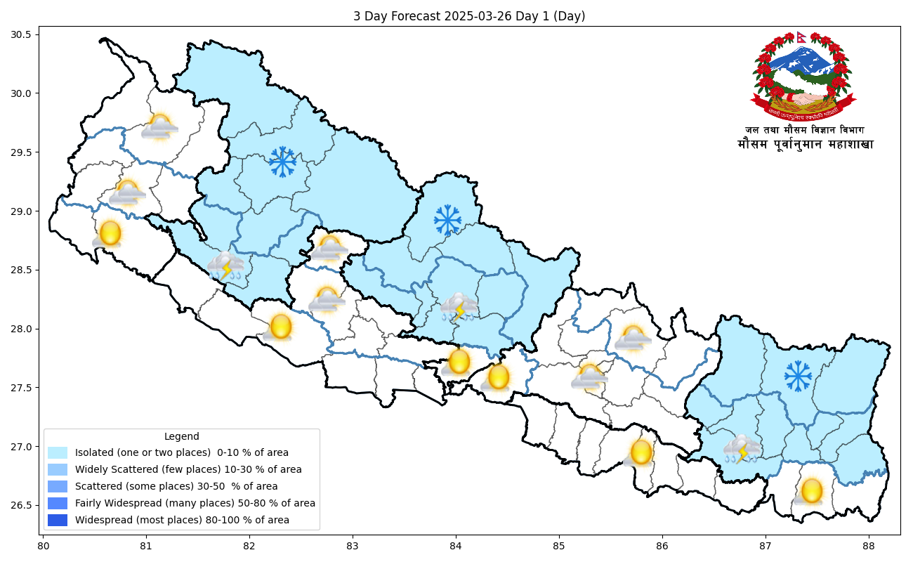 आजको मौसम : उच्च पहाडी तथा हिमाली भागमा हिमपातको सम्भावना
