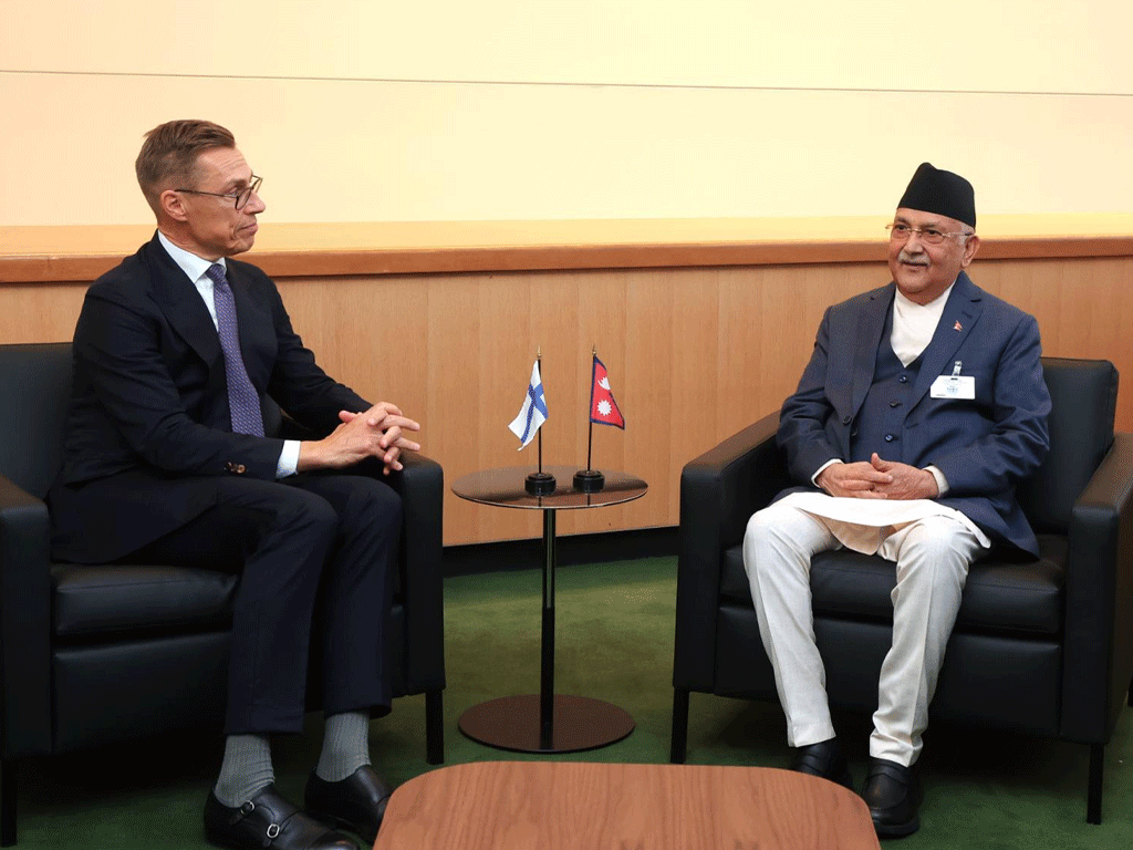 अन्तर्राष्ट्रिय मुख्य समाचार राजनीति समाचार प्रधानमन्त्री ओली र फिनल्याण्डका राष्ट्रपति स्टबबीच भेटवार्ता ९ असाेज, न्युयोर्क (अमेरिका) । संयुक्त राष्ट्रसङ्घको ७९औँ महासभामा भाग लिने क्रममा अमेरिकाको न्युयोर्कमा रहेका प्रधानमन्त्री केपी शर्मा ओली र ... BY राताे कागज सवाददाता 0 Comment