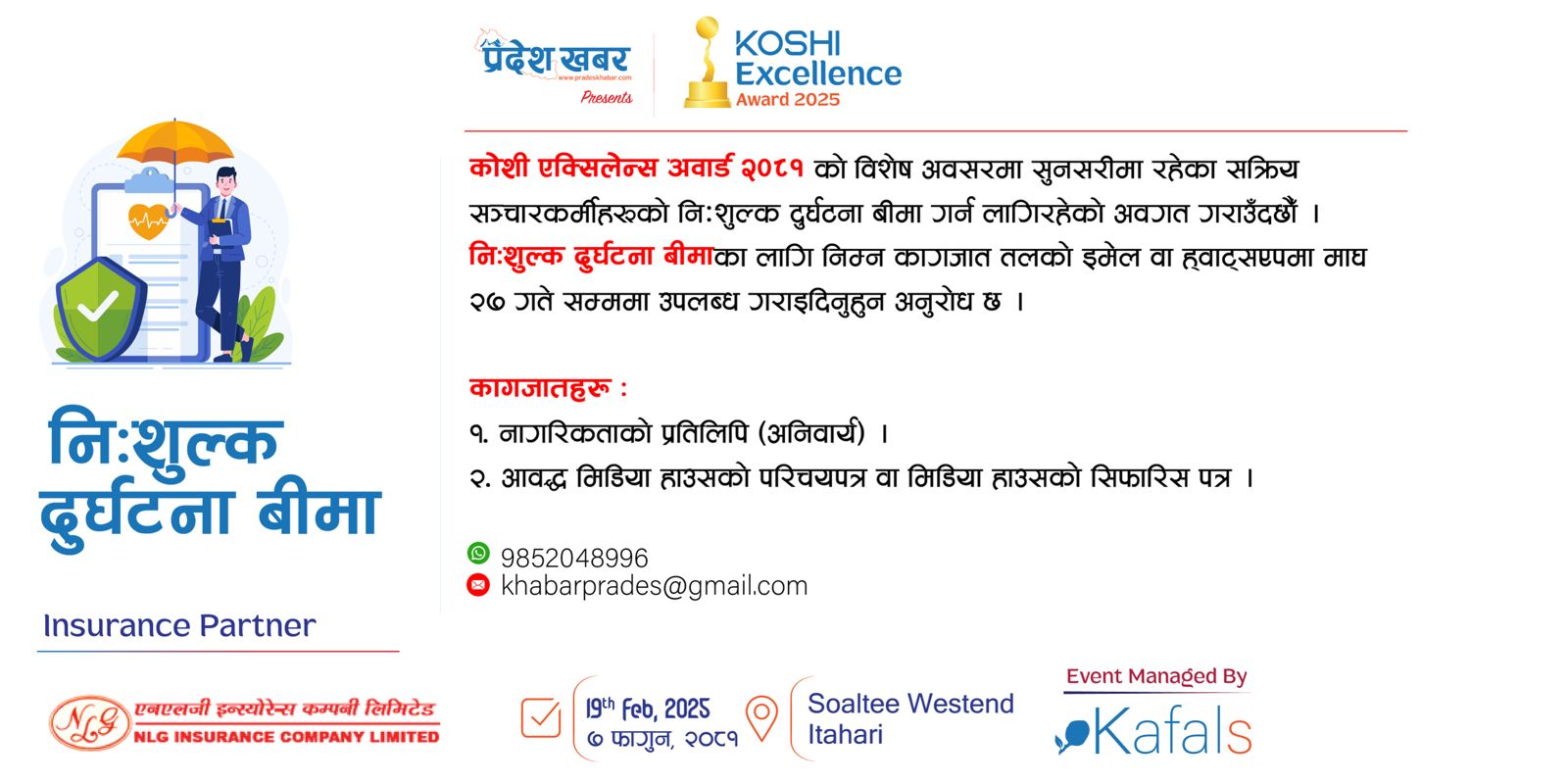 कोशी मुख्य समाचार समाचार समाज स्वास्थ्य प्रदेश खबरले सुनसरीका सञ्चारकर्मीहरूको निःशुल्क दुर्घटना बीमा गर्ने २३ माघ, इटहरी । इटहरीबाट सञ्चालित डिजिटल पत्रिका प्रदेश खबर डट कम अनलाइनले आफ्नो स्थापनाको दुई वर्ष पूरा गरी तीन वर्षमा... BY रातो कागज 0 Comment