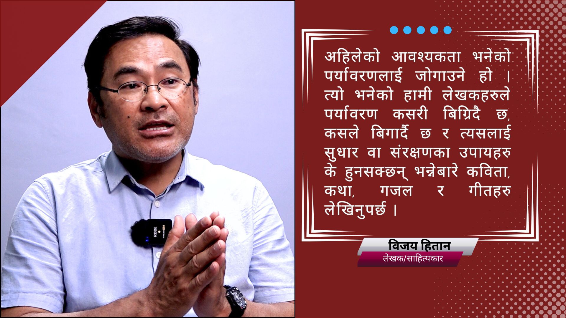मुख्य समाचार विचार समाचार समाज साहित्य/ समाचार माया–प्रेमका बारेमा साहित्य धेरै लेखियो, अब पर्यावरणबारे लेखौं : विजय... वेलायतबाट नेपाल कुनै न कुनै सन्दर्भ वा कार्यक्रम तय गरेर आउने गरेको छु । यस पटक यही जेठ १७... BY News and Updates 0 Comment