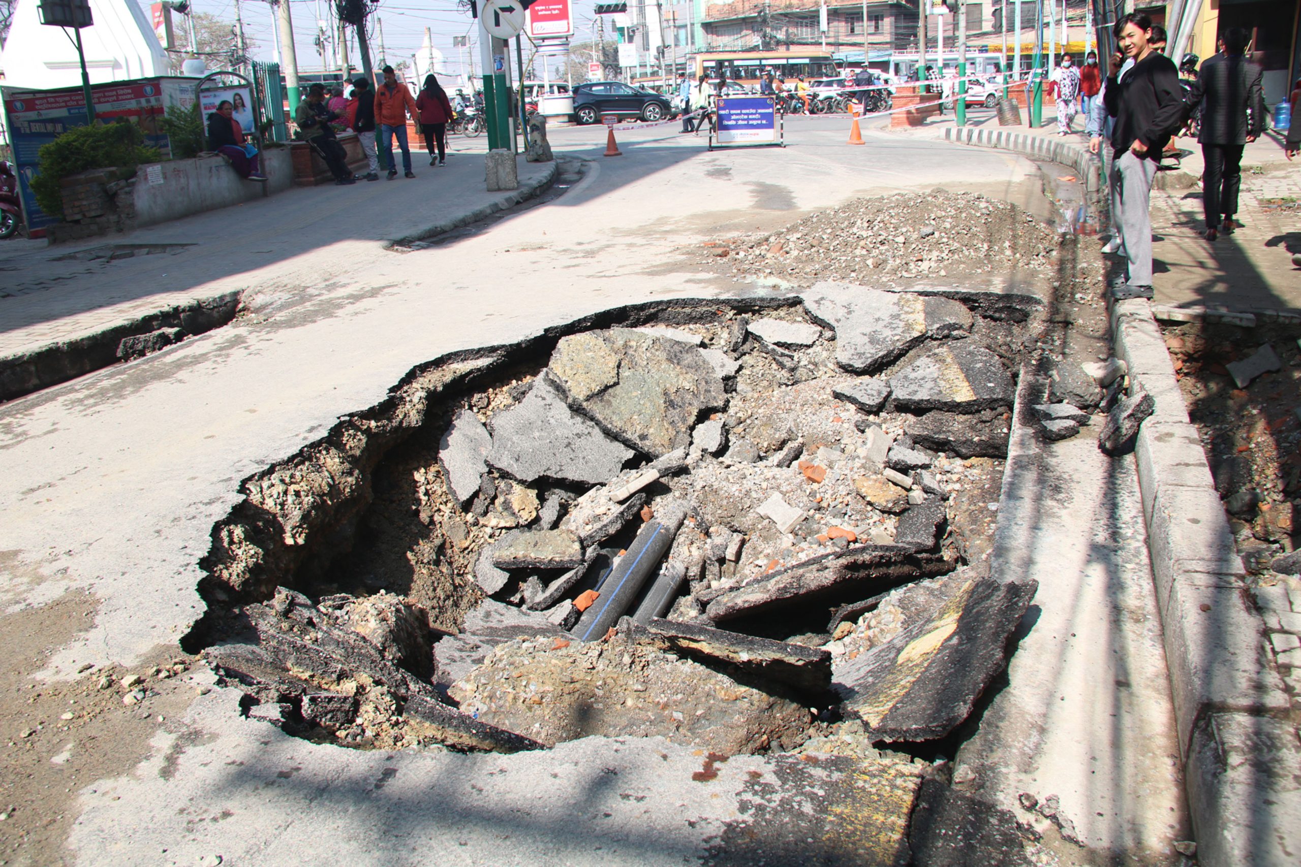 थापाथलीको सडकमा बग्यो पाँच लाख लिटर पानी