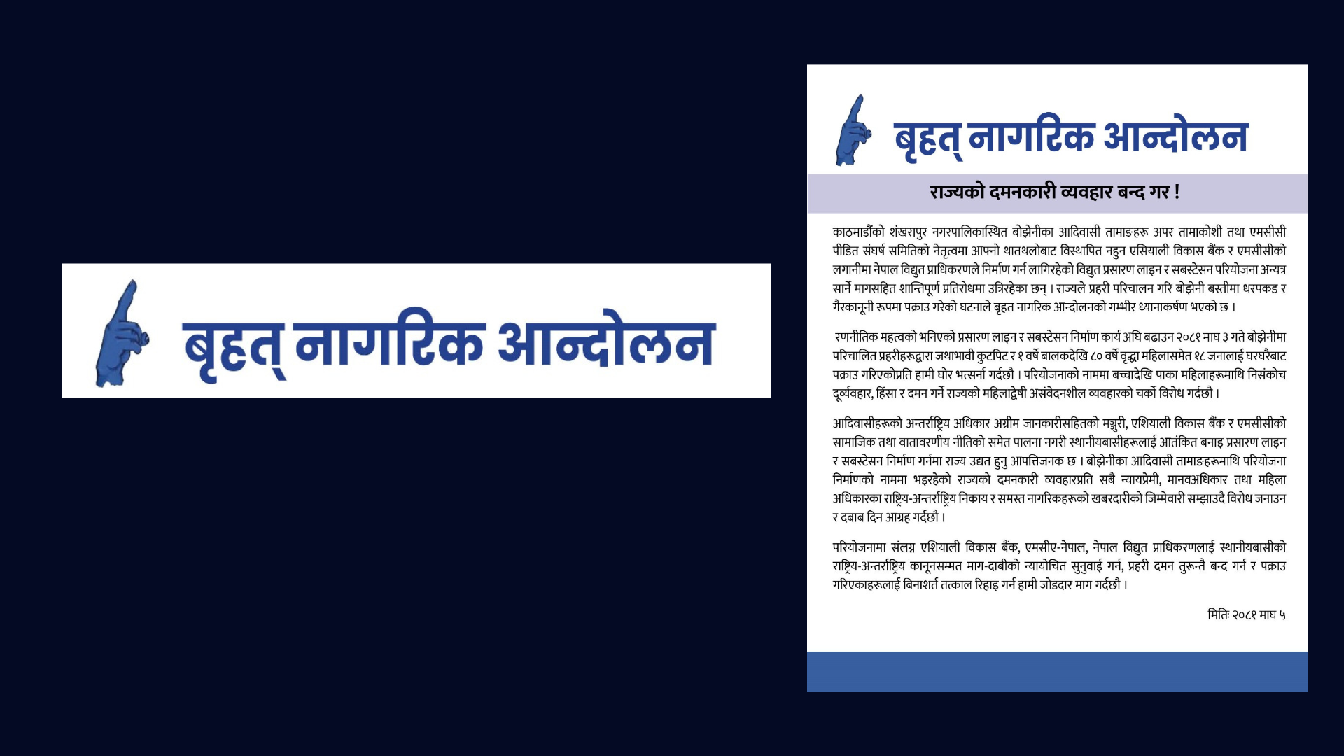 एमसीसी पीडितहरुको आन्दोलनप्रति बृहत नागरिक आन्दोलनको ध्यानाकर्षण