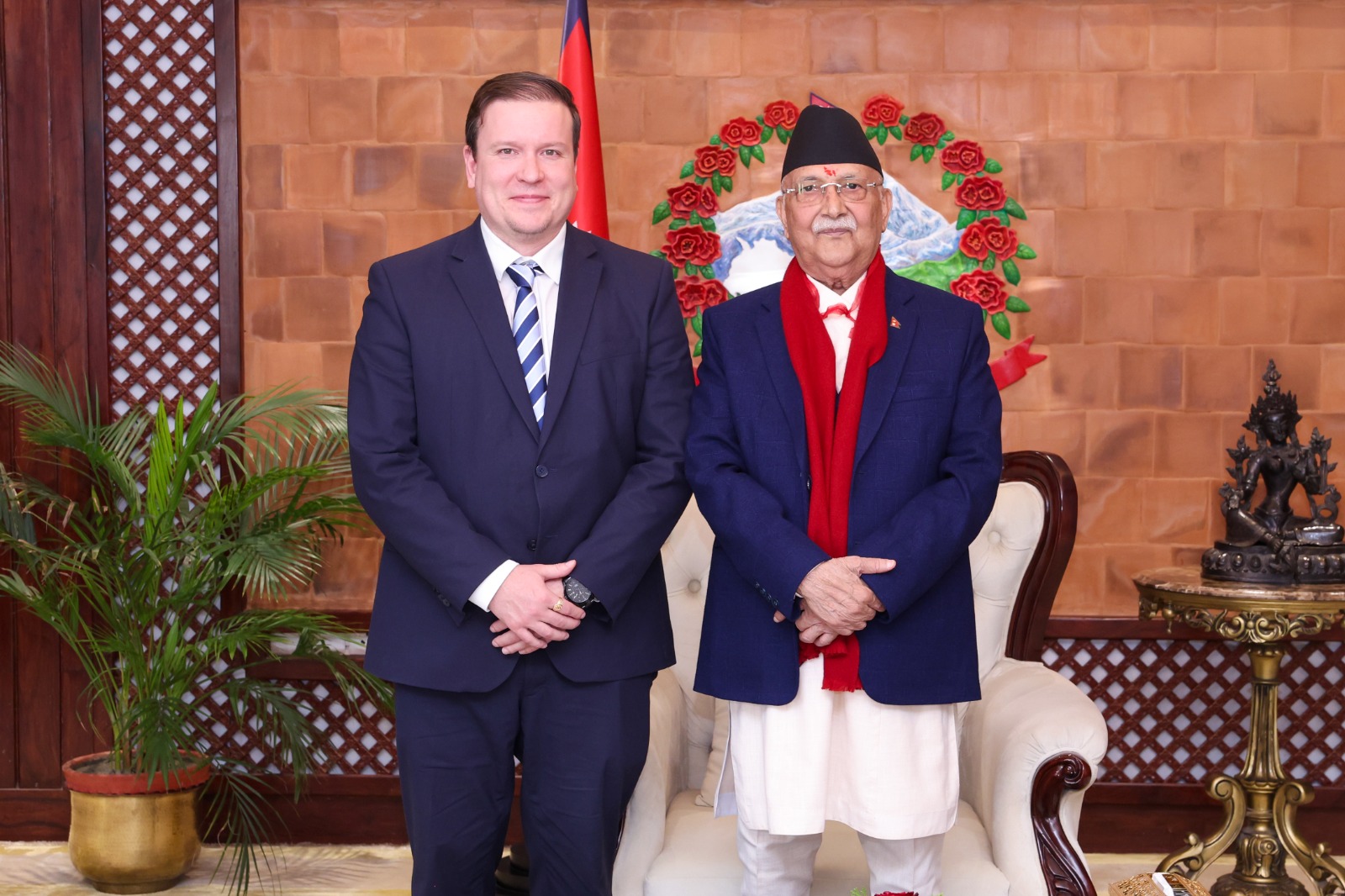 प्रधानमन्त्री ओलीसँग फिनल्याण्डका मन्त्री ताभियोको शिष्टाचार भेट