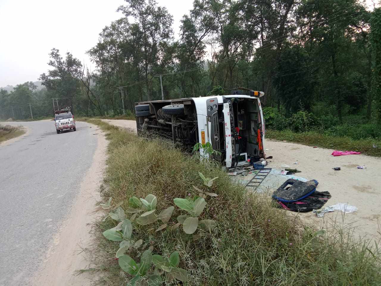 काठमाडौँबाट भारतको राजस्थान जाँदै गरेको बस नवलपुरमा पल्टियो : २३...