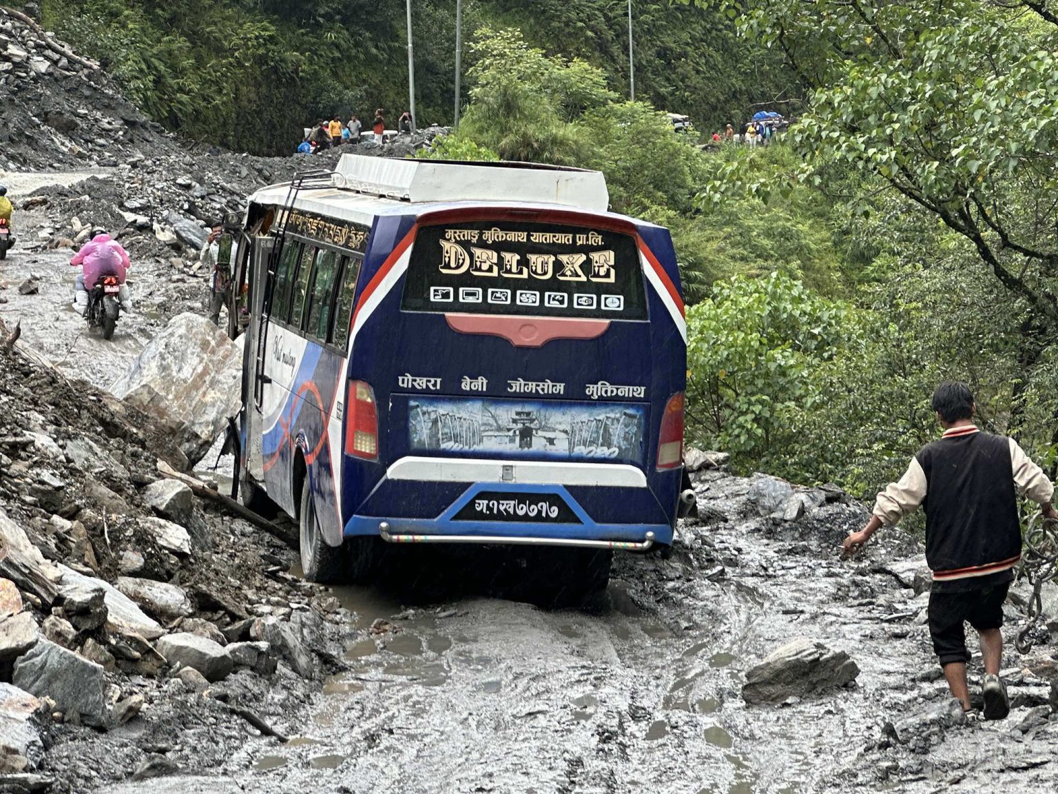 बेनी-जोमसोम-कोरला सडकः सिरुबारीको पहिरोमा दुर्घटनाको जोखिम