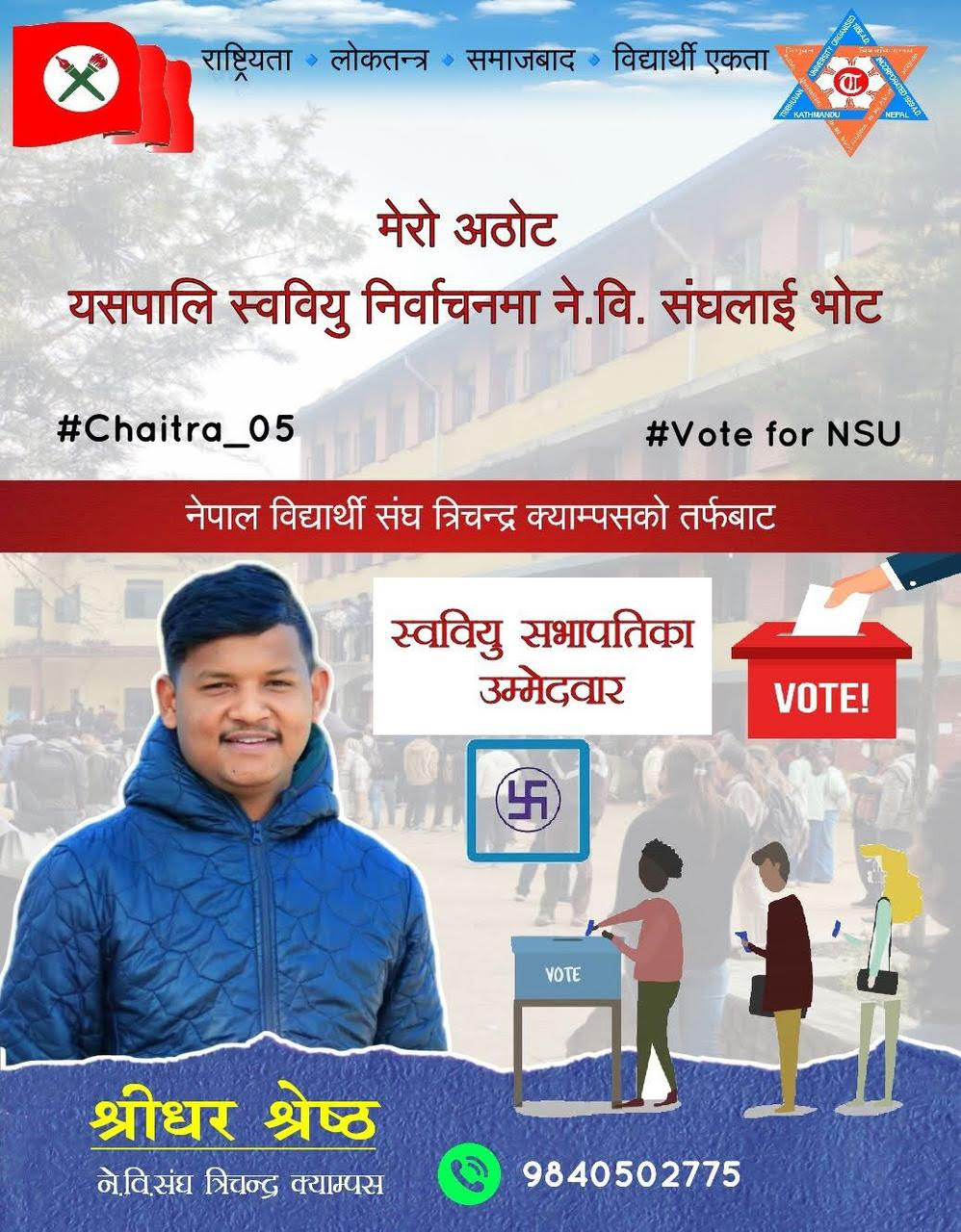 श्रीधर श्रेष्ठलाई नेपाल विद्यार्थी संघबाट सभापतिको आधिकारिक टिकट