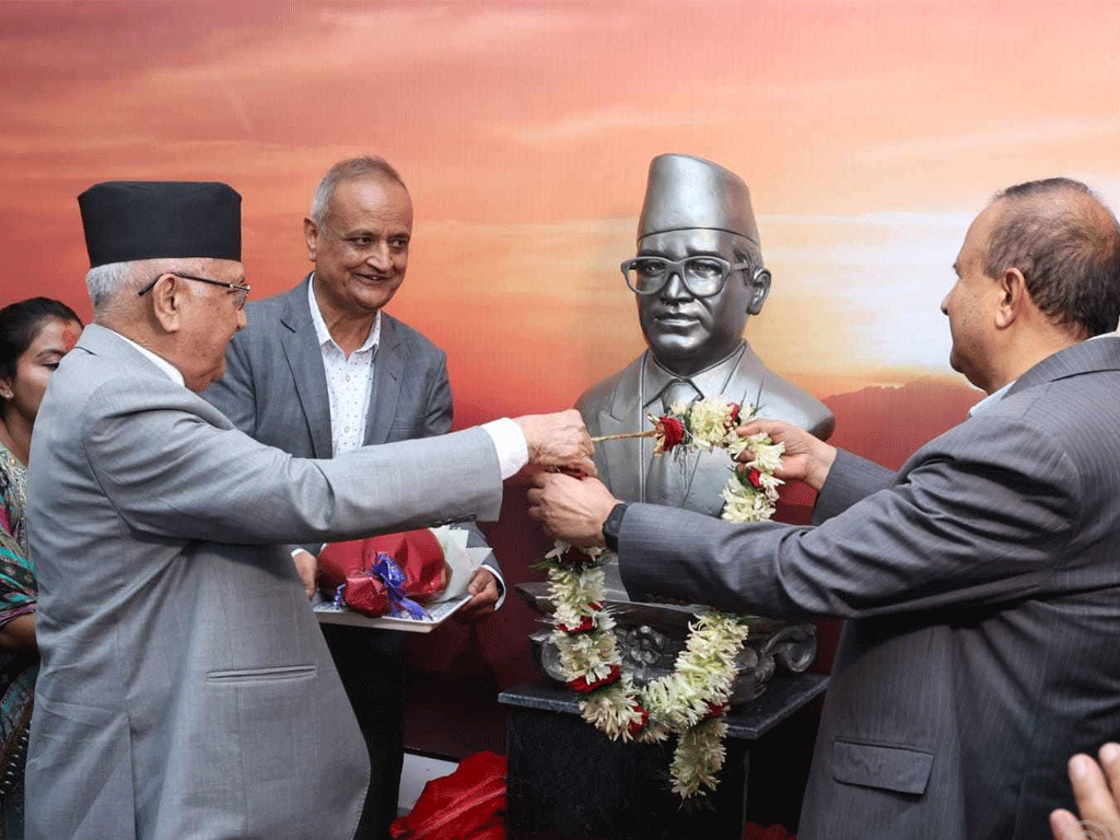 प्रधानमन्त्रीद्वारा जननेता मदन भण्डारीको अर्धकदको प्रतिमा अनावरण