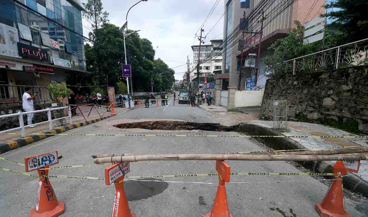 टुकुचाले कल्भर्टको टेको भत्काउँदा कमलादीको सडकमा भ्वाङ