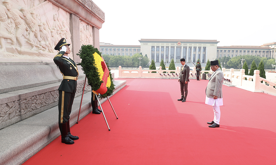 प्रधानमन्त्री दाहालद्वारा माओको समाधिस्थलमा श्रद्धाञ्जलि