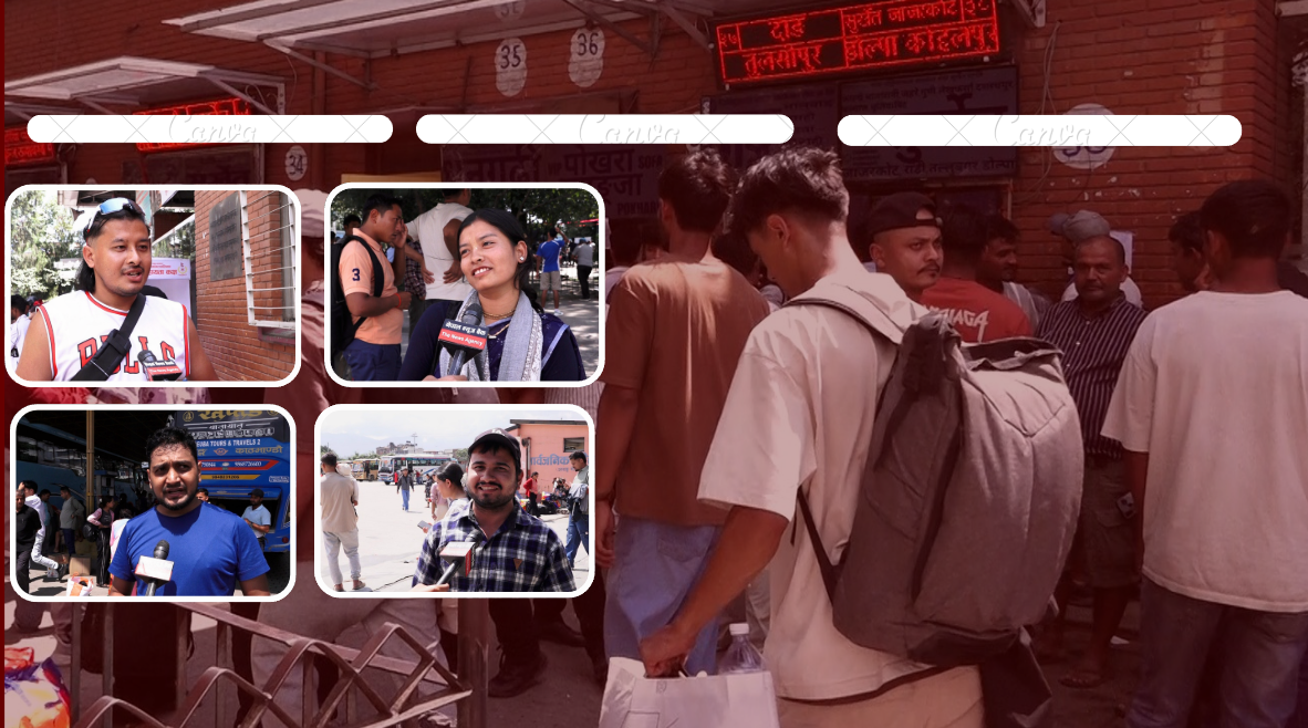बागमती मनोरन्जन मुख्य समाचार विशेष समाचार काठमाडौंबाट दसैं यात्रा : गाउँ फर्किंदा कोही उत्साहित, कोही चिन्तित काठमाडौं । नेपालीहरूका लागि वर्षको सबैभन्दा प्रतीक्षित चाड वडादसैं सुरु भइसकेको छ । चाडको आगमनसँगै राजधानी काठमाडौंबाट हजारौं मानिसहरू आफ्नो... BY रातो कागज ३ हप्ता अघि 0 Comment