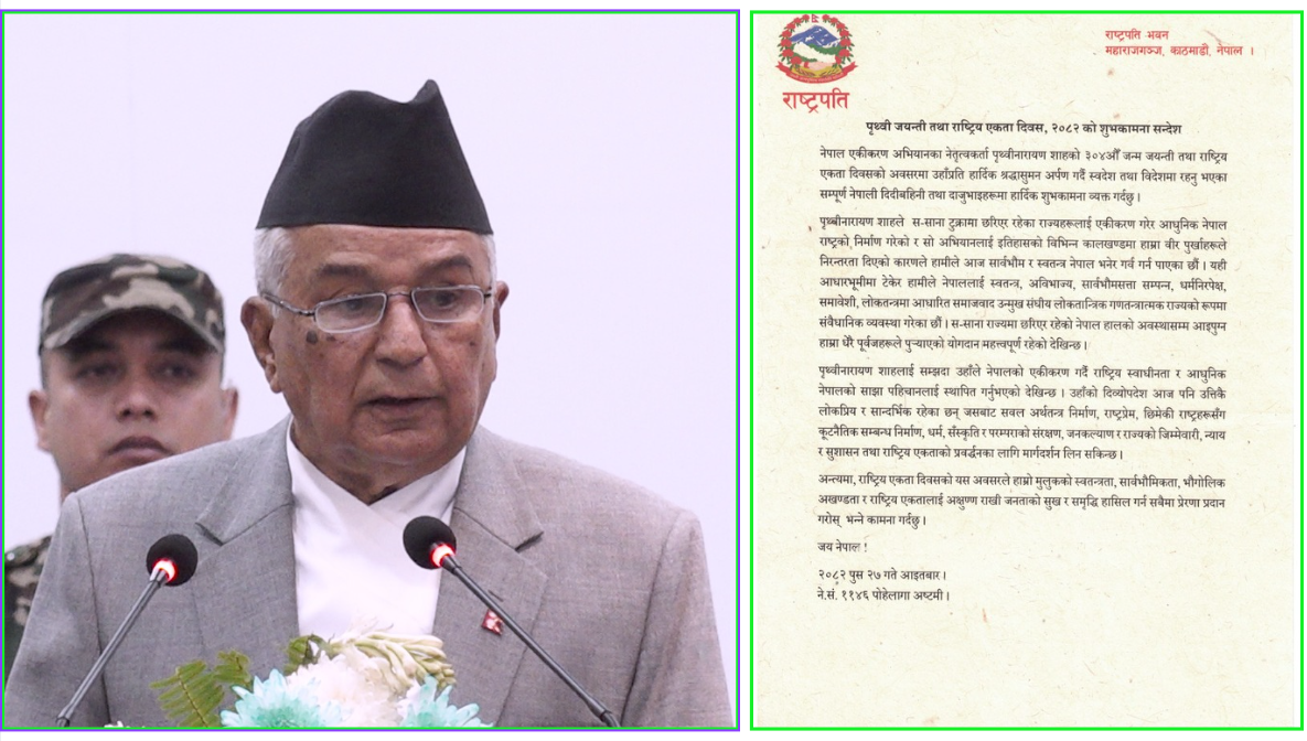 काठमाडौं । राष्ट्रपति रामचन्द्र पौडेलले पृथ्वीनारायण शाहको दिव्योपदेश राष्ट्रिय एकताको प्रवद्र्धनका लागि मार्गदर्शन बन्न सक्ने बताएका छन् । नेपाल एकीकरण...