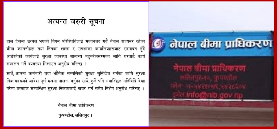 नेपालभरका बीमा कम्पनीहरूलाई घरबाटै सेवा सञ्चालन गर्न निर्देशन