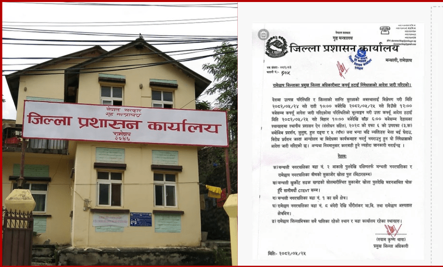 रामेछाप । रामेछाप जिल्लामा लगाइएको कफ्र्यू हटाएर निषेधाज्ञा जारी गरिएको छ । जिल्ला प्रशासन कार्यालय रामेछापले जिल्लाको शान्ति–सुरक्षाको अवस्था र...