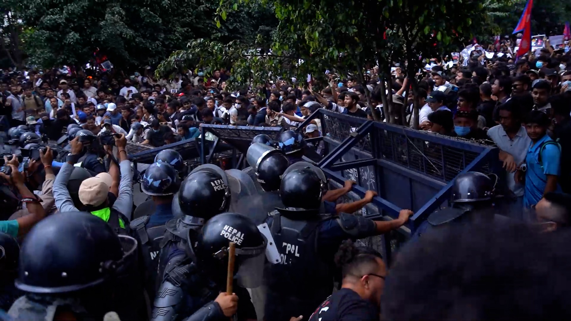 काठमाडौं । भ्रष्टाचारविरुद्ध जेनजी पुस्ताले गरेको आन्दोलनमा प्रहरीले गोली चलाएको छ । आन्दोनमा उत्रिएका जेनजीहरुले प्रहरीको निषेधीत क्षेत्र तोड्दै संसद् भवन प्रवेश गरेपछि स्थितिलाई नियन्त्रणमा लिन प्रहरीले रबरको गोली चलाएको हो । अहिले नयाँ बानेश्वर क्षेत्र तनावग्रस्त बनेको छ । प्रदर्शनकारीहरू संसद् भवनभित्रै प्रवेश गरेपछि जिल्ला प्रशासनले कफ्र्यू आदेश जारी गरिसकेको छ ।