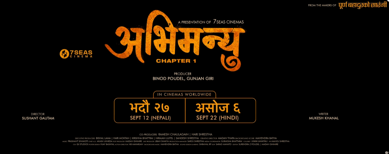 बागमती मनोरन्जन मुख्य समाचार चलपचत्र अभिमन्यु : च्याप्टर–१ को ट्रेलर काठमाडौं । चलचित्र ‘अभिमन्यु : च्याप्टर–१’को ट्रेलर सार्वजनिक भएको छ । भदौ २७ गते रिलिज हुने चलचित्रको ट्रेलर निर्माणपक्षले आज... BY रातो कागज २ महिना अघि 0 Comment