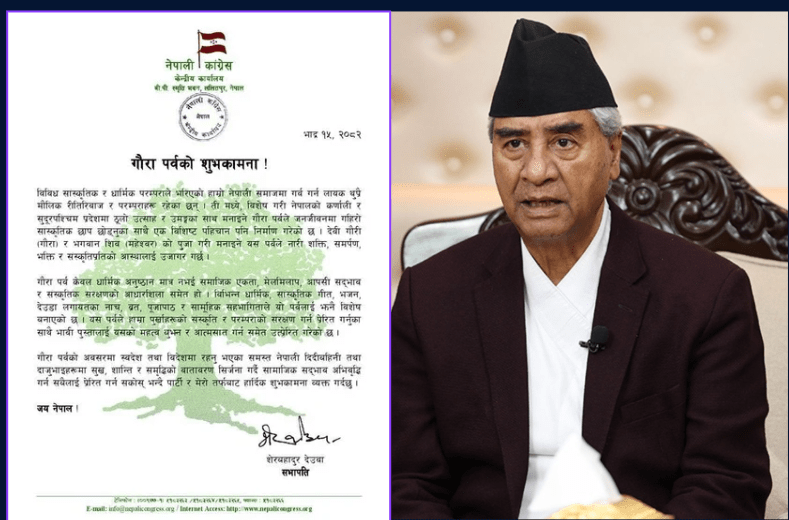 बागमती मुख्य समाचार विशेष समाचार गौरा पर्व समाजिक एकता, आपसी सद्भाव र संस्कृतिक संरक्षणको आधारशिला... काठमाडौं । नेपाली कांग्रेसका सभापति शेरबहादुर देउवाले गौरा पर्व समाजिक एकता, मेलमिलाप, आपसी सद्भाव र संस्कृतिक संरक्षणको आधारशिला भएको बताएका... BY रातो कागज १ महिना अघि 0 Comment