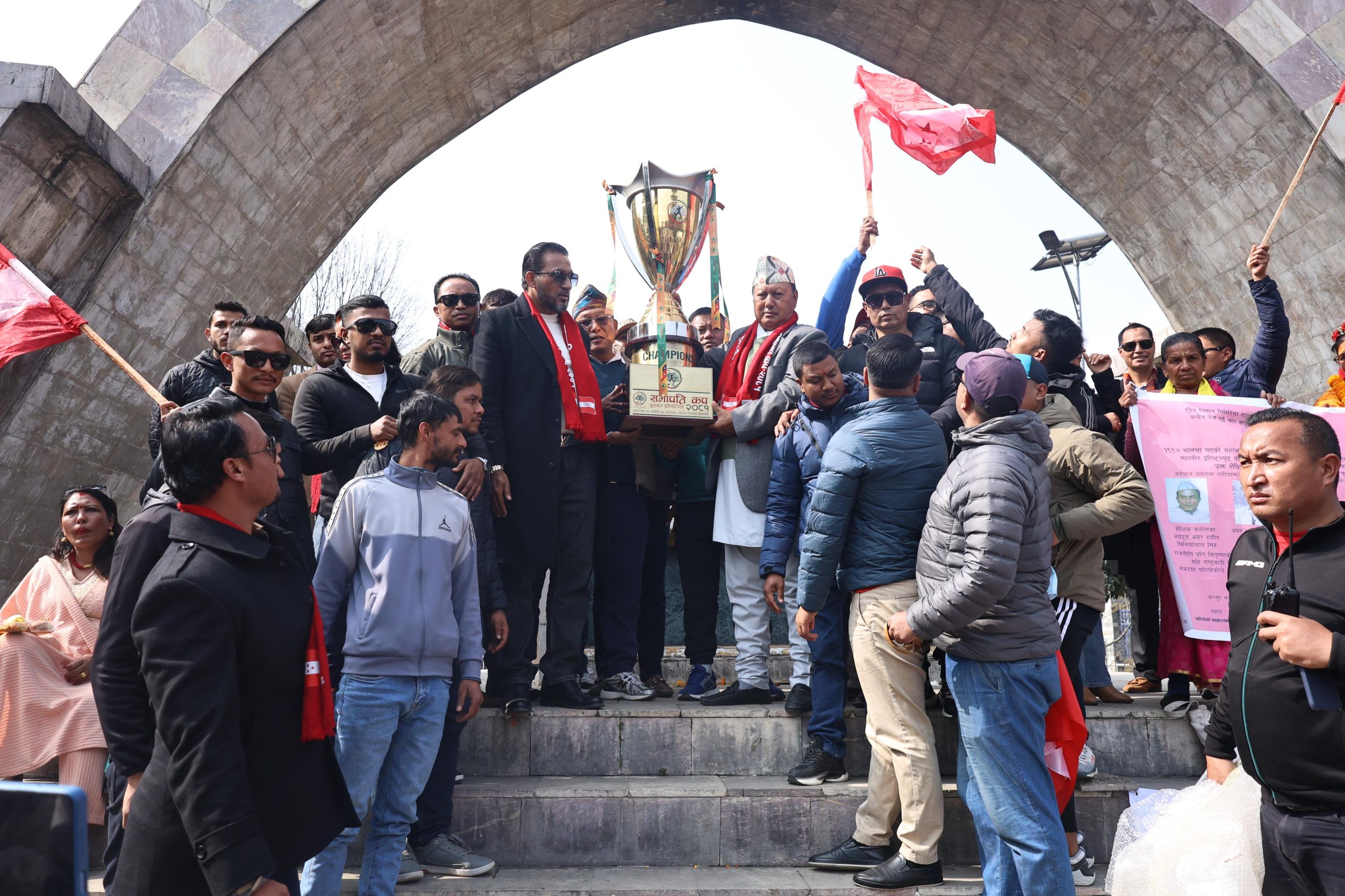 काठमाडौं । नेपाली काँग्रेस लोकतान्त्रिक खेलकुद सङ्घ महाधिवेशन निर्देशन समितिको आयोजनामा राजधानीमा जारी सभापति कप फुटबल प्रतियोगिताको ट्रफी आज अनावरण...