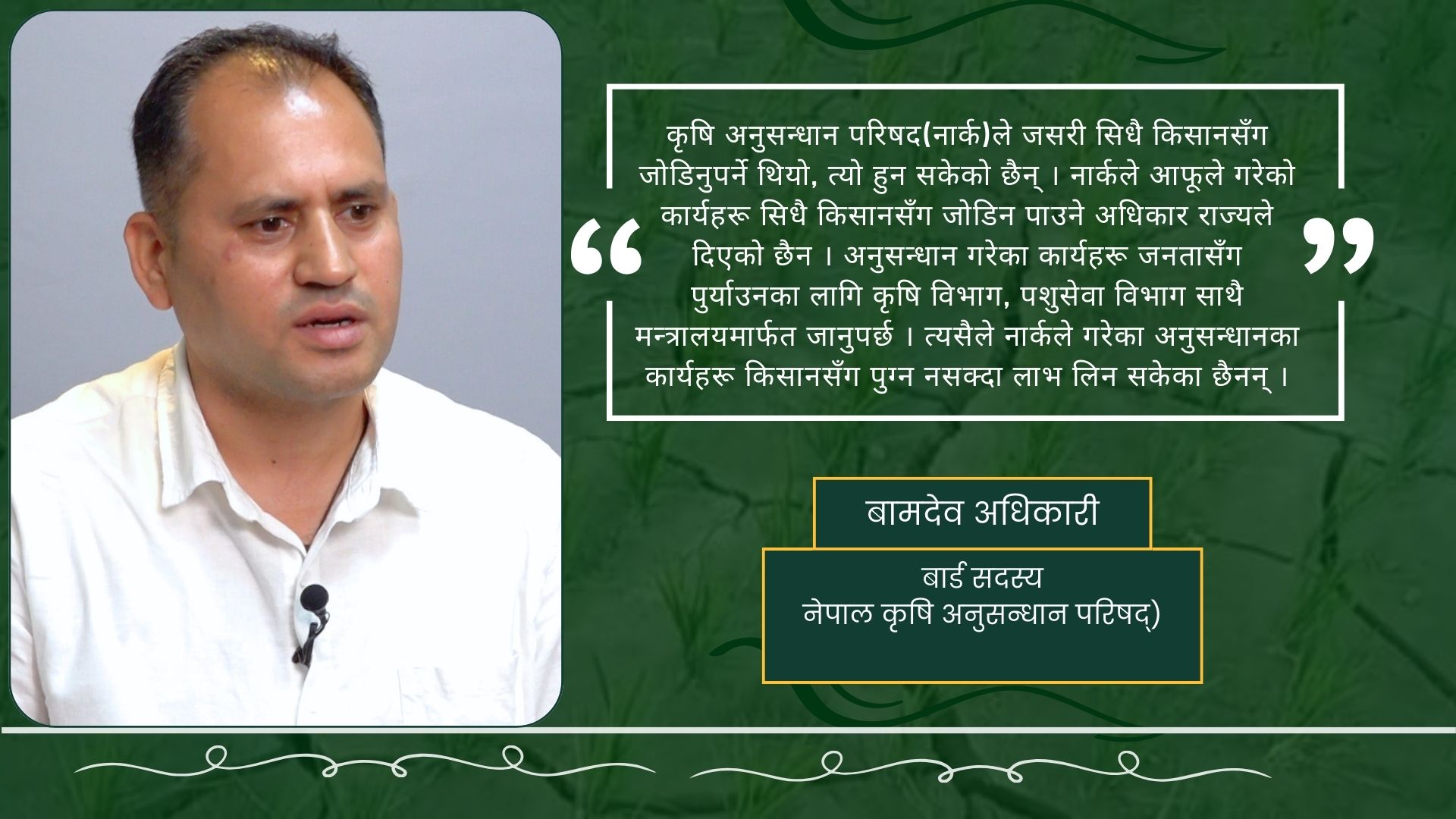 काठमाडौं । नेपालमा कृषि क्षेत्रलाई अनुसन्धानमूलक बनाउनुपर्छ भन्ने उद्देश्यले र राज्यलाई कृषि क्षेत्रको नीति निर्माण गर्नकालागि लागि सल्लाह दिने निकायका...
