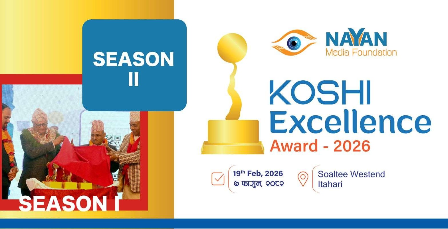 कोशी मुख्य समाचार समाचार कोशी एक्सिलेंस अवार्ड–२०२६ : तीन नयाँ विधासहित तयारी सुरु इटहरी । आगामी फागुन ७ गते इटहरीस्थित सोल्टी वेस्टेन्ड होटेलमा आयोजना हुने ‘कोशी एक्सिलेंस अवार्ड–२०२६’ का लागि तयारी औपचारिक रूपमा... BY रातो कागज 0 Comment