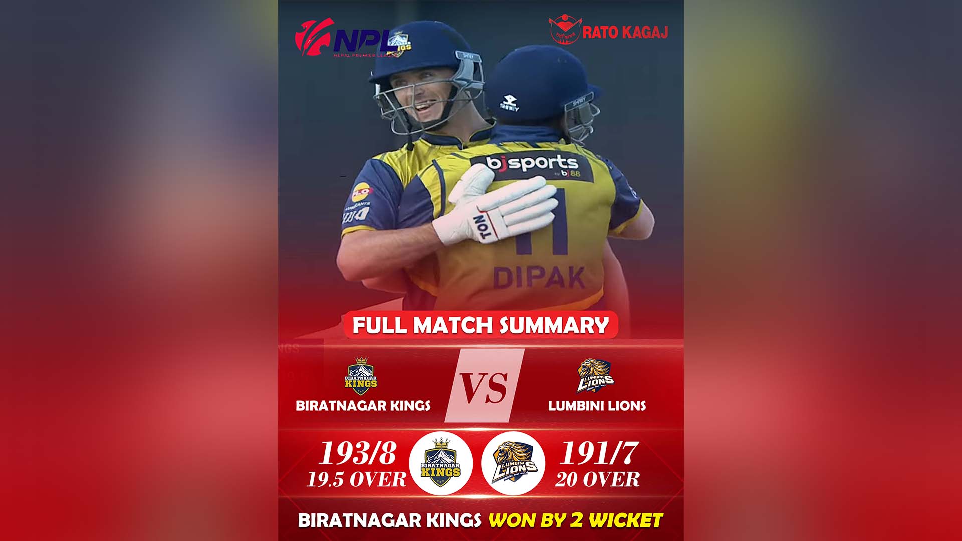खेलकुद बागमती मुख्य समाचार समाचार समाज लुम्बिनीमाथि विराटनगरको रोमाञ्चक जित १९ मङ्सिर, काठमाडौं । नेपाल प्रिमियर लिग(एनपीएल) मा विराटनगर किङ्सले पहिलो जित दर्ता गरेको छ । हाइस्कोरिङ थ्रिलरमा लुम्बिनी लायन्सलाई विराटनगरले... BY रातो कागज 0 Comment