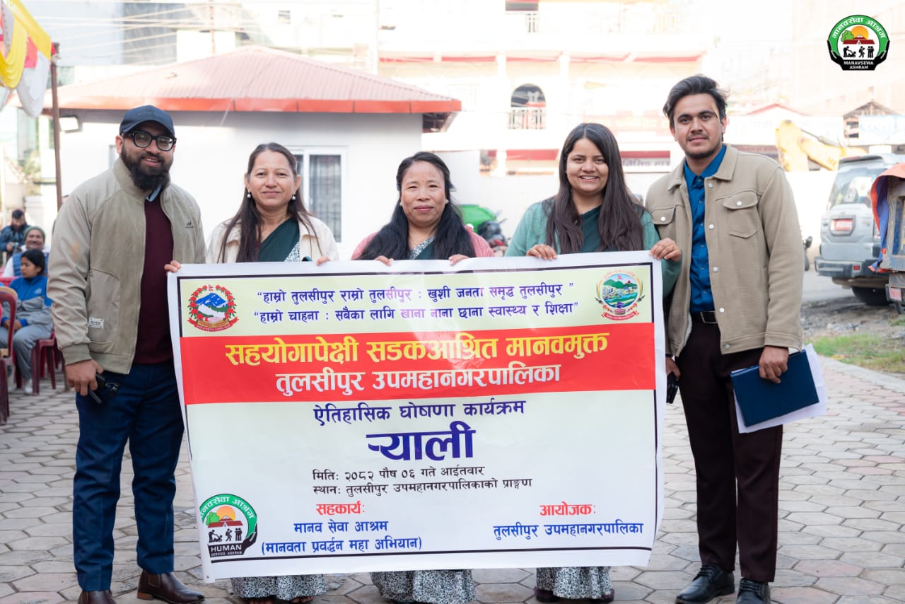 दाङ। मानवसेवा आश्रमको सहकार्यमा आइतबार तुलसीपुर उपमहानगरपालिकालाई ‘सहयोगापेक्षी सडकआश्रित मानवमुक्त’ घोषणा गरिएको छ। तुलसीपुर उपमहानगरपालिकाको आयोजनामा सम्पन्न कार्यक्रममा नगरप्रमुख टिकाराम...