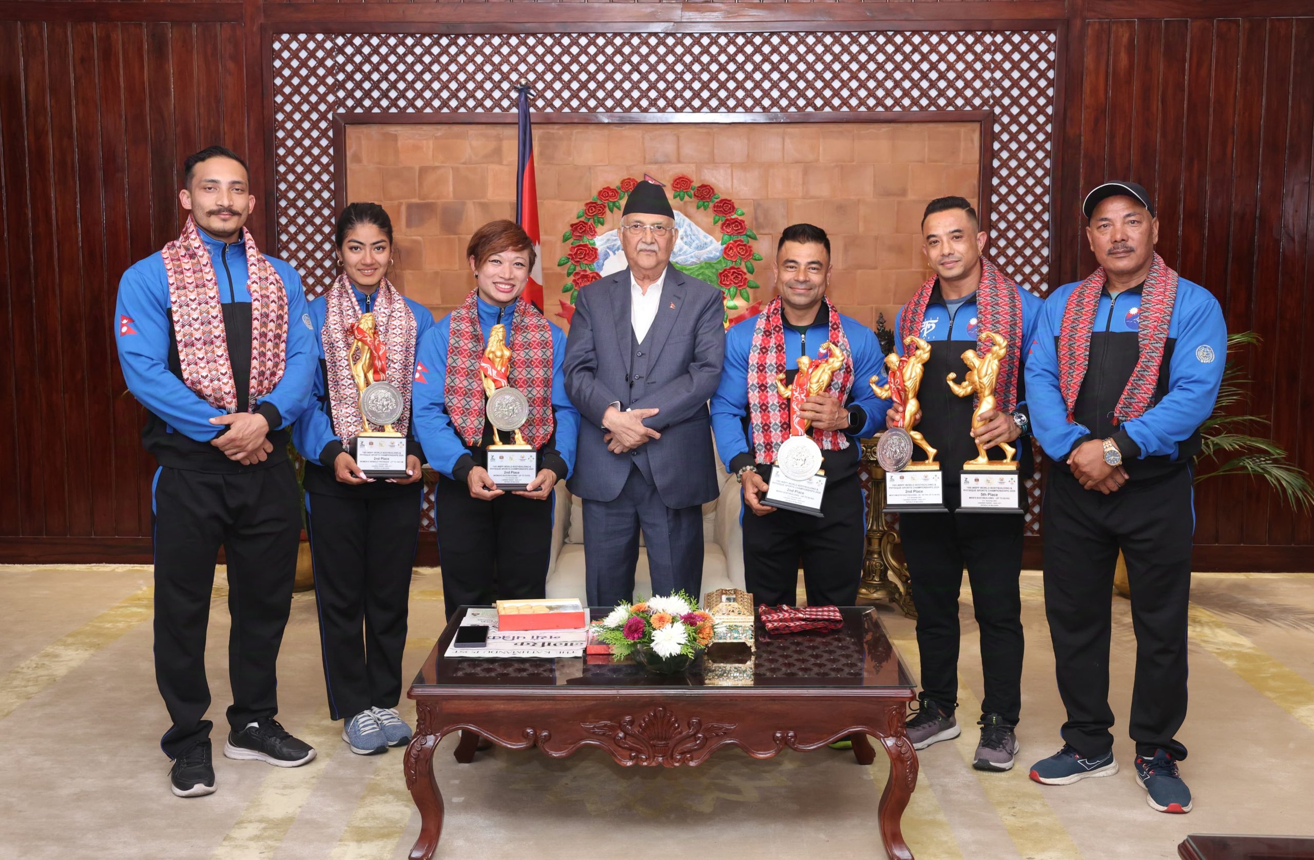 शारीरिक सुगठनमा विजयी खेलाडी प्रधानमन्त्रीबाट सम्मानित