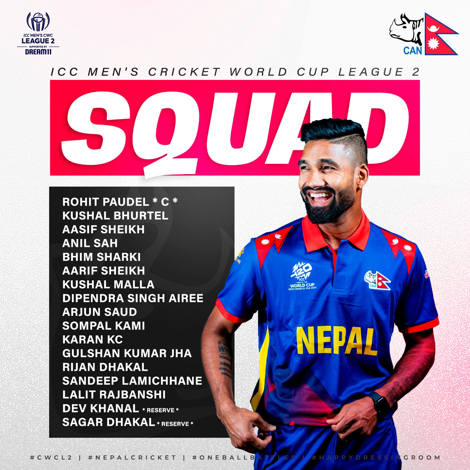 विश्वकप लिग –२ अन्तर्गतको त्रिकोणात्मक सिरिज खेल्ने नेपाली टिमको घोषणा