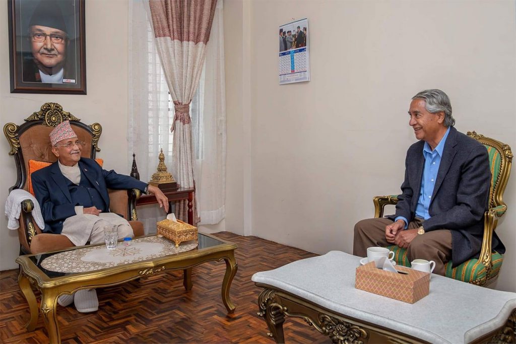 प्रधानमन्त्री ओलीलाई भेट्न बालुवाटार पुगे देउवा