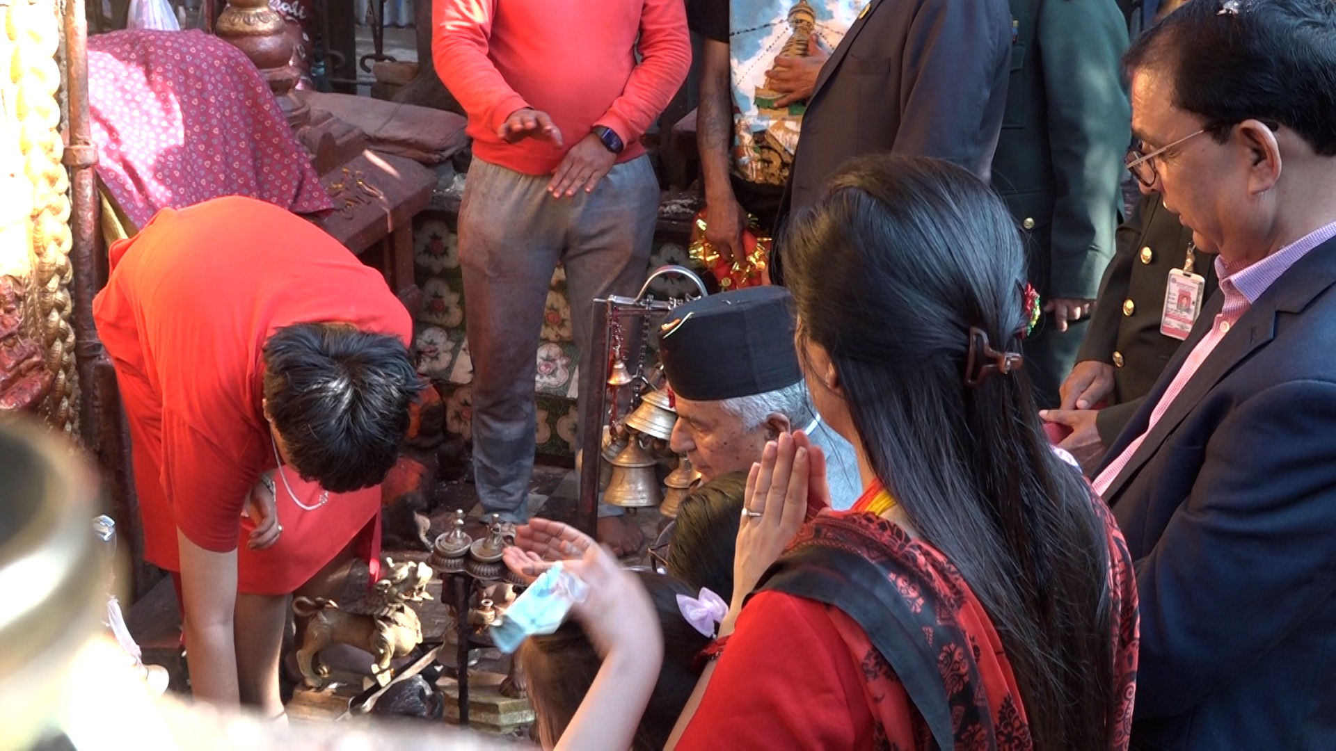 राष्ट्रपति पौडेल धर्मपत्नीका साथ मैतिदेवी मन्दिरमा