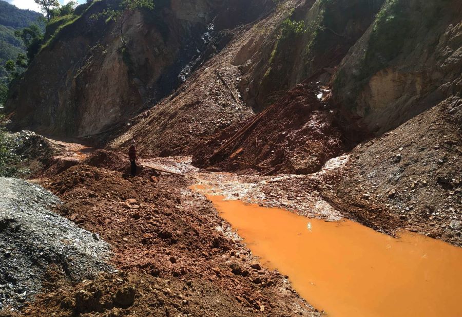 लेदो माटोले नौबिसे-नागढुङ्गा सडक अवरुद्ध