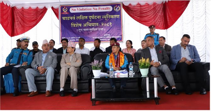 चाडपर्वलक्षित दुर्घटना न्युनीकरण विशेष अभियानमा जुट्यो प्रहरी