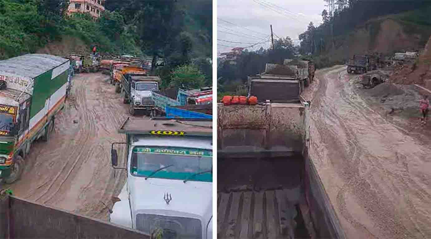 अरनिको राजमार्ग मर्मत गर्न २ दिन टिपर र मालबाहक गाडी...
