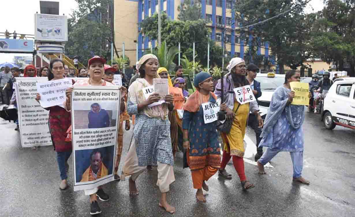निर्मला कुर्मीलाई न्याय माग्दै माइतीघरदेखि बालुवाटारसम्म पैदल मार्च