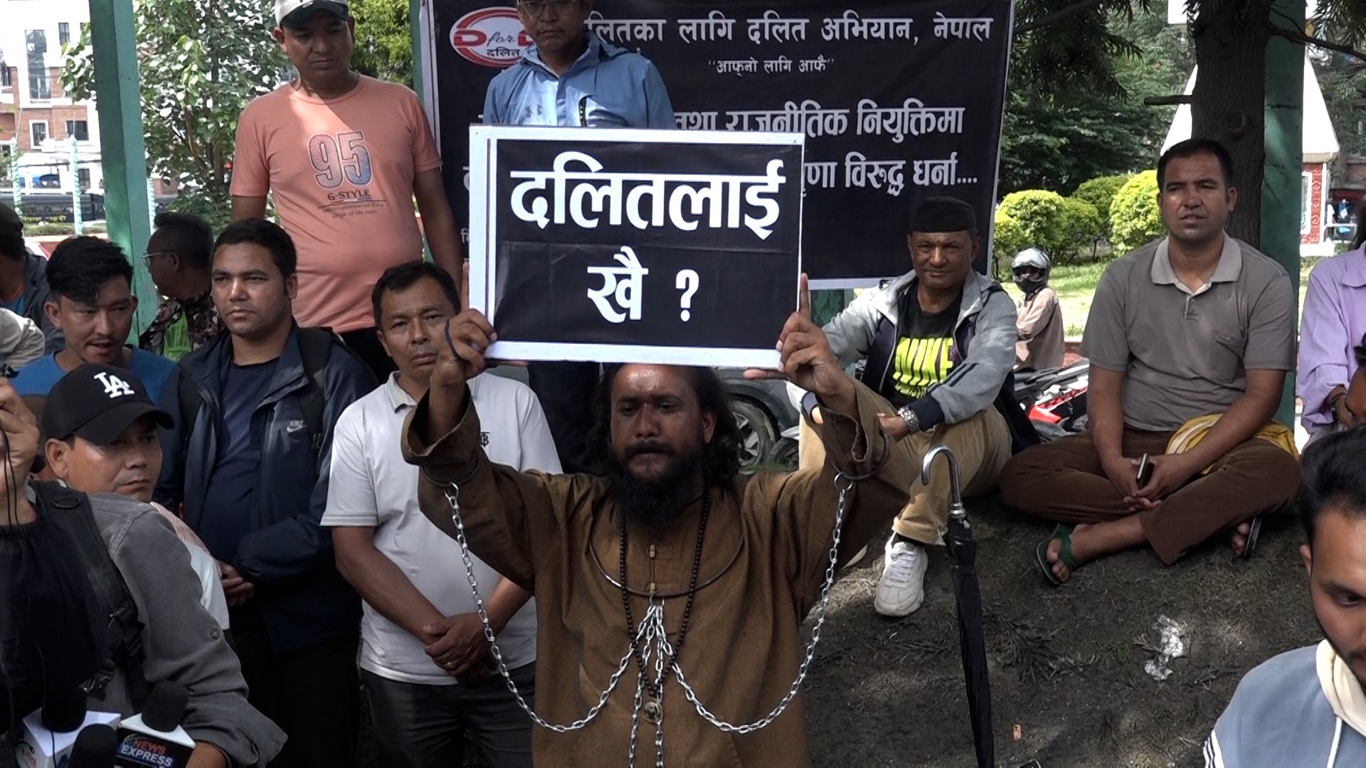 दलितलाई घृणा गरेको भन्दै हातखुट्टामा नेल लगाएर प्रर्दशन