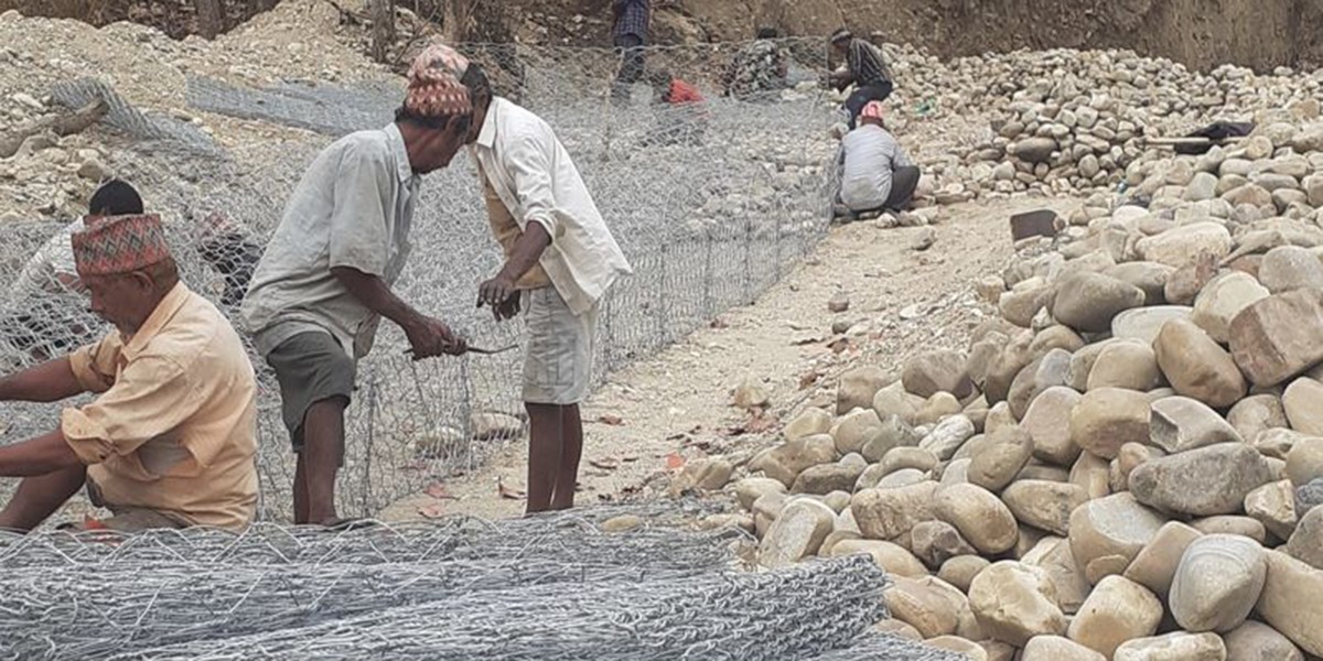 बस्ती जोगाउन श्रमदानबाट तटबन्ध निर्माण
