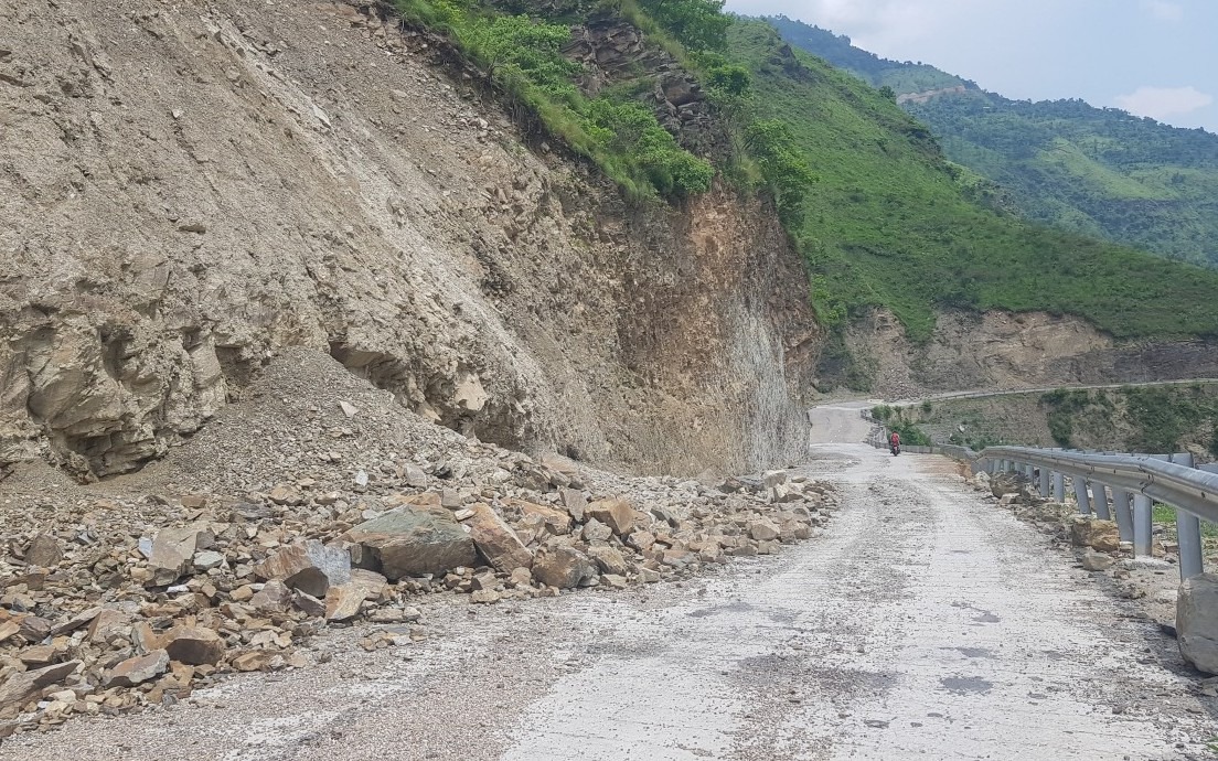 मध्यपहाडी लोकमार्गको सडक धसियो, धसिएको भाग माटोले छोपेको आरोप