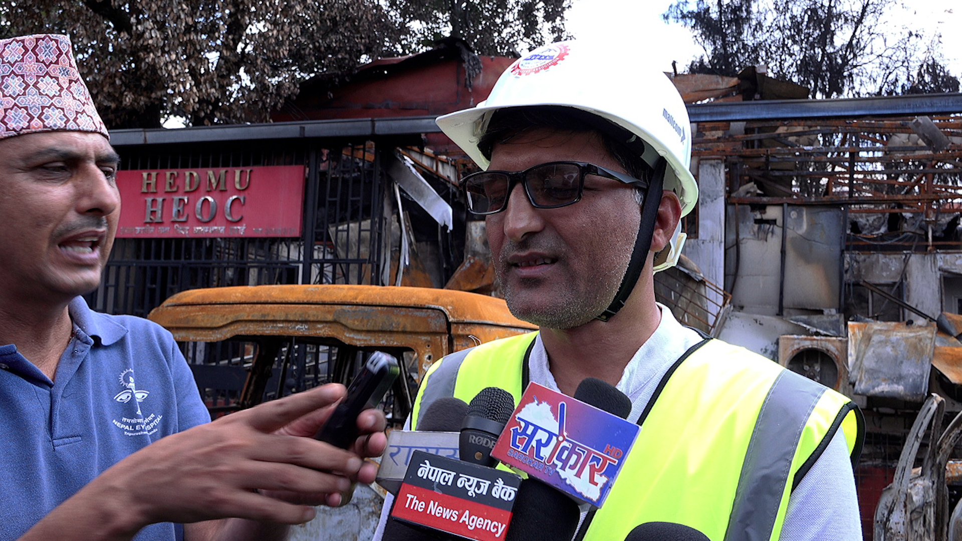 आगजनी गरिएका भवनको अवलोकनमा इन्जिनियर एशोसिएशन
