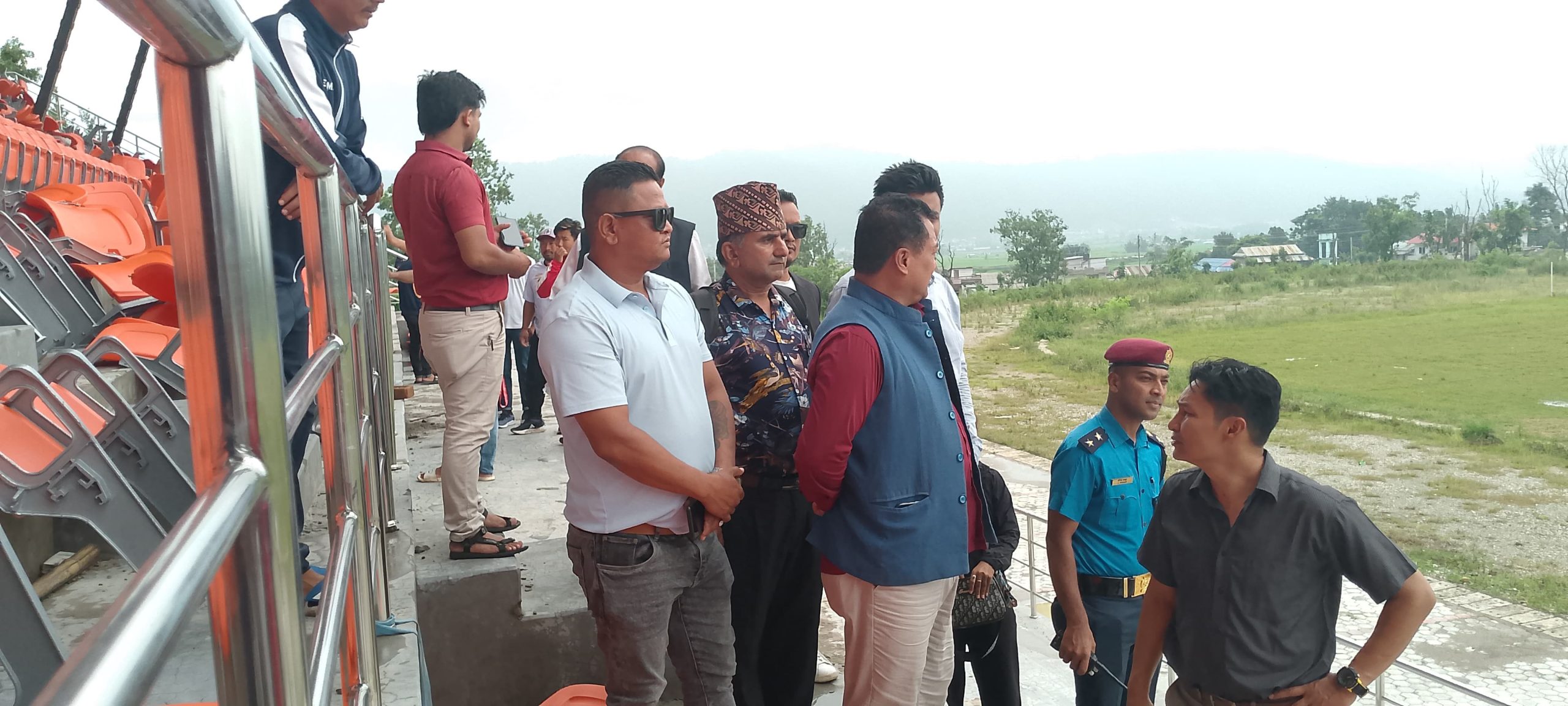 गौरीघाटको क्रिकेट रंगशाला र पौडी पोखरीको मन्त्री श्रेष्ठले गरे निरीक्षण