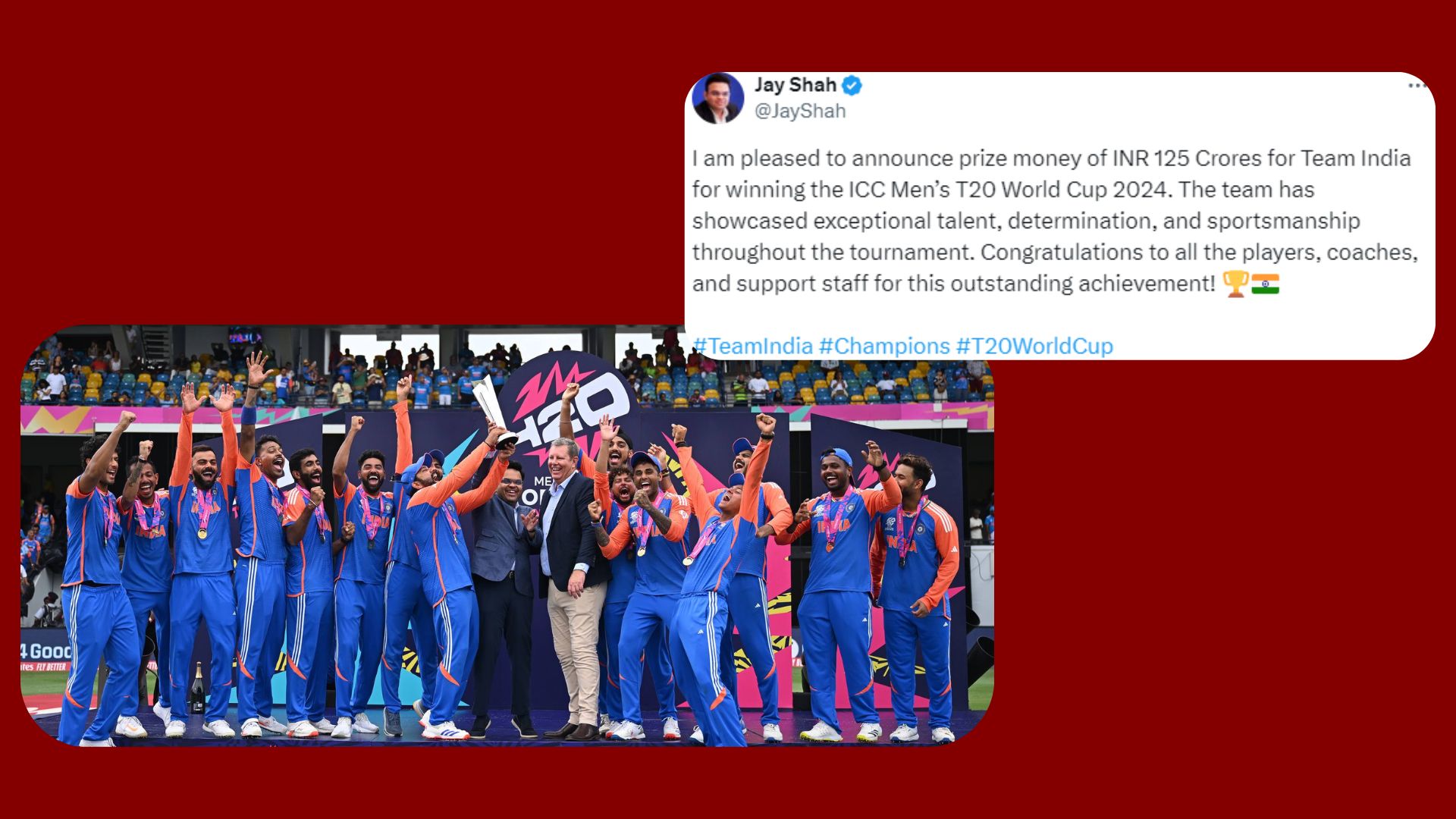 विश्वकप जित्ने भारतीय टोलीलाई एक सय २५ करोड पुरस्कार