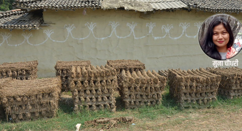 प्रचण्ड गर्मीमा‘गुइँठा’बनाउँदै महोत्तरीका गृहिणी