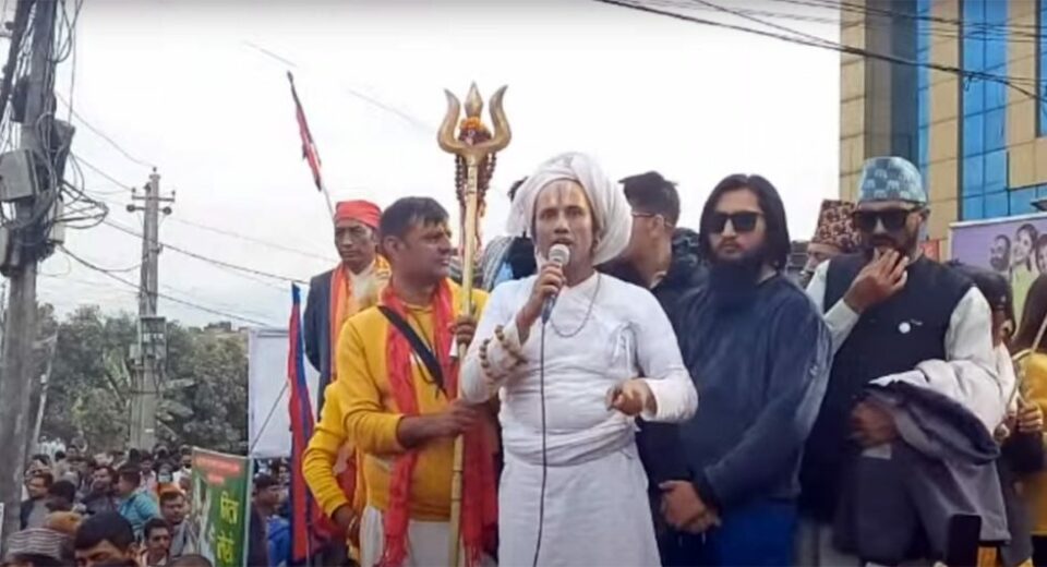 ११ मंसिर, काठमाडौं । दुर्गा प्रसाईंको नेतृत्वमा सोमबार गौशालामा भएको प्रदर्शनमा विवादास्पद धर्मगुरु आचार्य श्रीनिवास पनि उपस्थित भएका छन् । प्रसाईं नेतृत्वमा भएको आन्दोलनमा आफ्ना समर्थकसहित गएर उनले उग्र अभिव्यक्ति दिएका छन् । गेरुवस्त्रमा त्रिसुलसहित आएर उग्र अभिव्यक्तिसँगै सडक अबरुद्ध पार्न खोजेपछि प्रहरीले लगत्तै उनलाई पक्राउ गरेको छ । जिल्ला प्रहरी परिसर, काठमाडौंका प्रमुख एसएसपी […]