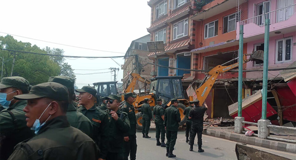 गौशाला चोकका घरमा काठमाडौं महानगरले चलायो डोजर
